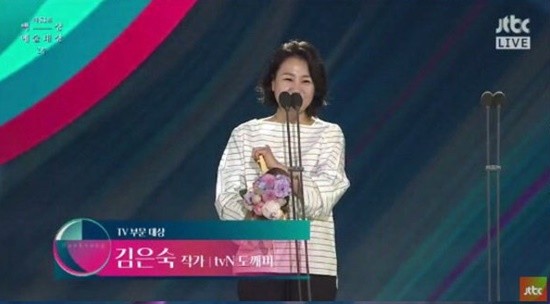 한편 로맨틱 코미디의 달인으로 시청률 보증수표로 불렸지만 작품성으로 인정받지 못했던 김은숙 작가는 지난해 방송된 '도깨비'로 흥행과 작품성을 동시에 인정받았고 이번 '백상예술대상'으로 그 정점을 찍었다