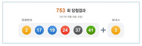 한편 제753회 로또당첨번호조회는 '2·17·19·24·37·4'1이다