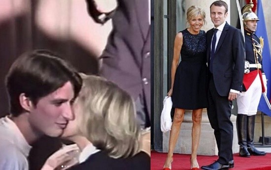 해당 사진을 보면 마크롱이 당시 프랑스 문학 선생님 이였던 트로뉴와 다정히 키스 하는 모습이 담겨져 있다.