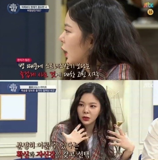8일 방송된 JTBC 예능 '비정상회담'에서는 뮤지션 장재인이 출연해 미래를 위한 삶과 현재를 즐기는 삶에 대한 고민에 대해 토론했다.