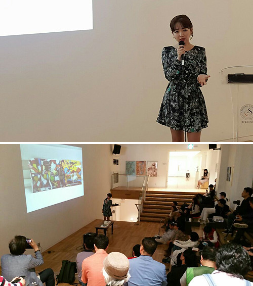 이날 윤송아는 초 중 고 시절의 작품부터 초창기 백합시리즈, 채소시리즈에 이어 동물시리즈, 그리고 요즘 인기를 얻고 있는 낙타시리즈까지 자신의 작품 100여점을 소개해 강연장을 찾은 예술 애호가들에게 깊은 인상을 남겼다.