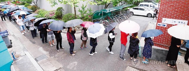 제19대 대통령선거일인 9일 오전 서울 노원구 극동늘푸른아파트 경로당에 마련된 상계1동 제7투표소 앞에서 유권자들이 투표를 하기 위해 길게 줄서있다.