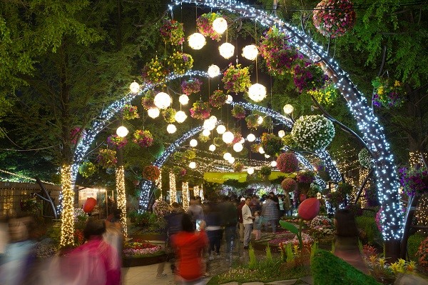 오는 14일까지 개최되는 2017고양국제꽃박람회의 ‘알록달록 정원’은 낮에나 밤에나 관람객들로 북적인다.