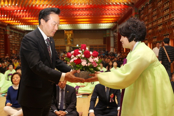 조동탁 서울 강동구의회 의장은 최근 불기 2561년 ‘부처님 오신 날’을 맞아 구강사 봉축 점등식과 동명사 봉축법요식에 각각 참석했다. 사진은 봉축법요식에 참석한 조 의장(사진 왼쪽)의 모습. (사진제공=강동구의장)