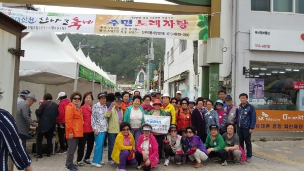 중랑구는 망우관리역과 함께 지난 8일 어버이날을 맞이해 지역 노인 40여명과 함께 강원도 평창으로 기차여행을 떠나는 '실버트레인'을 운영했다. 사진은 평창 진부전통시장을 방문한 노인들이 기념촬영을 하는 모습.(사진제공=중랑구청)