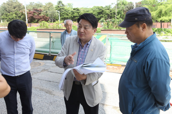 서울 도봉구의회 홍국표 의원(가운데)은 지난 10일 덕성여자대학교 앞 삼양로142길 주택가 일대의 도로포장 불량과 노후화된 하수관으로 인해 주민이 불편을 겪고 있다는 소식을 듣고 주민 불편 현장을 방문해 점검했다.(사진제공=도봉구의회)