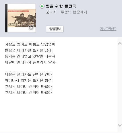 | ▲ (사진=네이버 뮤직 '임을 위한 행진곡' 가사 캡쳐) | ||