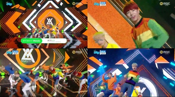 '음악중심 무대에 오른 바시티는 봄이 느껴지는 무지개 컬러의 귀여운 의상을 입고 무대에 올라 상큼한 매력을 발산했다.