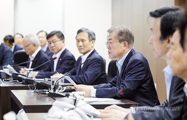 문재인 대통령이 14일 오전 청와대에서 북한의 탄도미사일 발사와 관련해 소집한 국가안전보장회의를 주재하고 있다.