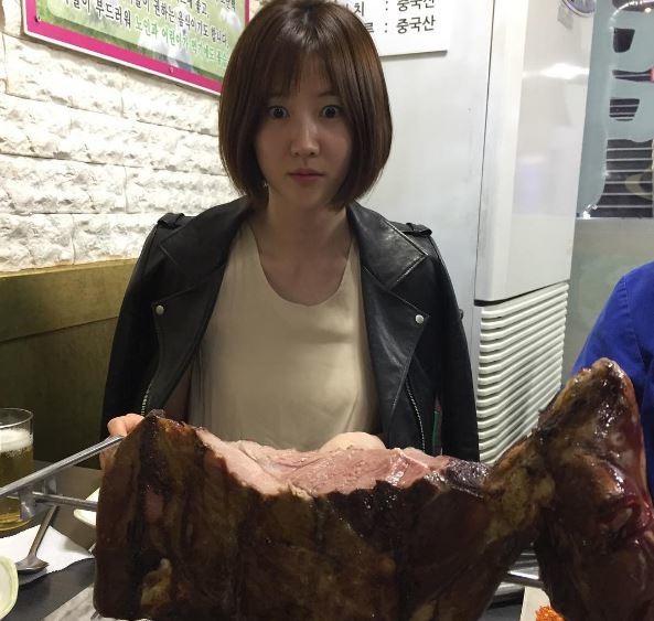 게재된 사진 속 그는 커다란 양다리 구이를 보며 눈을 크게 뜨고 있어 이목을 집중시켰다.