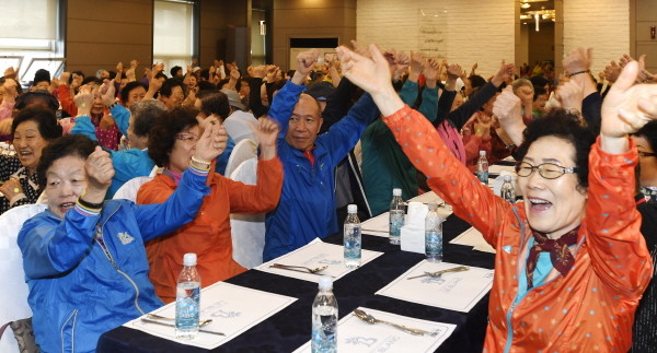 서울 광진구가 '제45회 어버이날'을 맞아 지난 16일 중곡4동 웨딩부띠크르블랑에서 15개 동별로 ‘2017 어버이날 기념 경로잔치’를 열었다. 사진은 행사에 참석한 노인들이 즐거운 시간을 보내는 모습.(사진제공=광진구청)