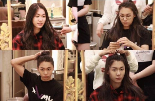 공개된 사진 속 장문복은 헤어숍에서 머리를 손질 중인 것으로 보이며 청순한 긴 생머리, 반묶음 머리, 올림머리까지 다양한 헤어스타일을 시도하고 있는 모습이다.