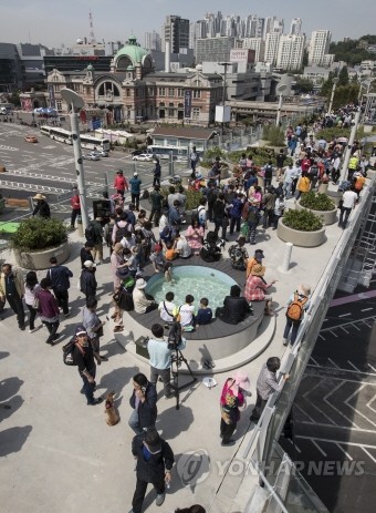 20일 오전 정식 개장한 서울역 고가 보행길 '서울로 7017'에서 시민들이 시간을 보내고 있다.