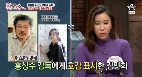 이에 연예부 기자는 “내가 알기로는 홍상수가 김민희를 만나면서 이혼 의사를 밝힌 걸로 알고 있다”며 “또 내가 듣기로는 영화 촬영할 때 김민희가 홍상수에게 굉장히 호감표시를 공공연하게 했다고 한다. 그런 과정에서 홍상수가 흔들리지 않았을까 싶은 생각이 든다”고 밝혀 출연진들을 모두 놀라게 했다.