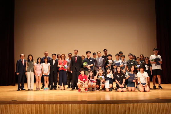 | ▲ 지난해 열린 '제4회 서울 구로국제어린이영화제' 시상식 후 기념촬영을 하고 있는 참가자와 관계자들. | ||