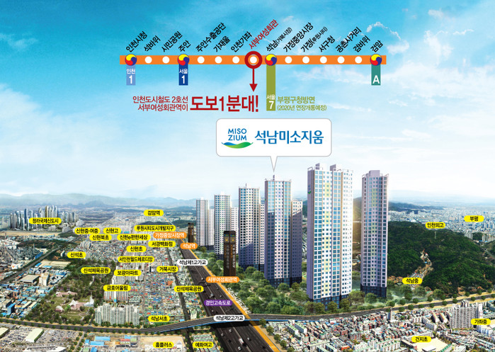‘석남 미소지움’은 개발호재가 풍부한 입지와 사통팔달의 교통여건, 그리고, 초·중·고교가 밀접한 교육인프라로 편리한 주거환경은 물론, 미래가치 상승의 기대감이 높은 아파트이다.