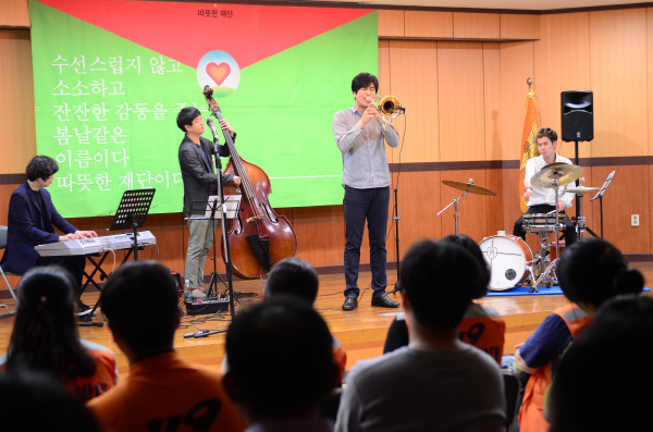 서울 영등포소방서는 지난 23일 소방서 4층 강당에서 국민의 생명을 구하기 위해 불철주야 뛰고 있는 소방공무원 및 의용소방대원을 응원하기 위해 '따뜻한 재단 출동음악회'를 개최했다. 사진은 따뜻한 재단 관계자들이 연주를 선보이는 모습.(사진제공=영등포소방서)