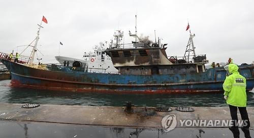 | ▲ 화재로 선원이 숨진 사고가 났던 중국어선의 모습.(사진제공=연합뉴스) | ||