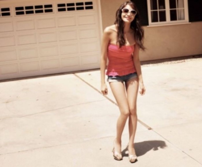 사진 속 한채영은 피치컬러의 탱크탑과 데님소재의 숏팬츠를 입고 선글라스를 낀 채 카메라를 바라보고 있다.