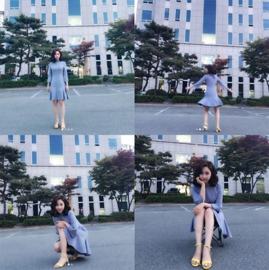 공개된 사진 속 이유리는 푸른색의 원피스를 입고 재치있는 다양한 포즈를 취했다