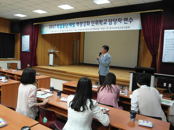 경기도부천교육지원청 Wee센터는 지난 29일 지원청 대회의실에서 학교별 학업중단 숙려제 및 예방사업 운영담당자 130여명을 대상으로 연수를 개최했다. 사진은 교육이 진행 중인 모습.(사진제공=부천교육지원청)