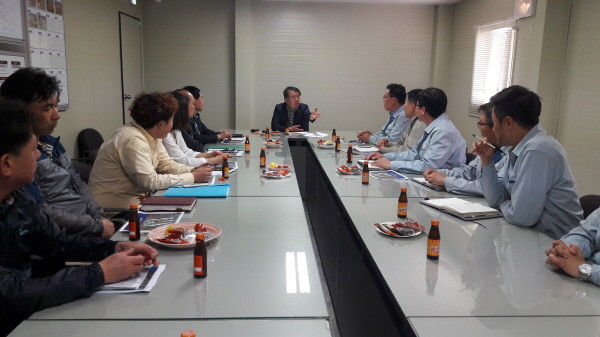 경기 수원시 권선구는 지난 29일 호매실 소재 아파트 신축공사 현장을 방문해 ‘찾아가는 불만-Zero 멘토링제’ 운영상황을 꼼꼼히 살피고 주민의 불편사항을 점검했다. 사진은 이필근 구청장(가운데)이 발언하는 모습.(사진제공=권선구청)