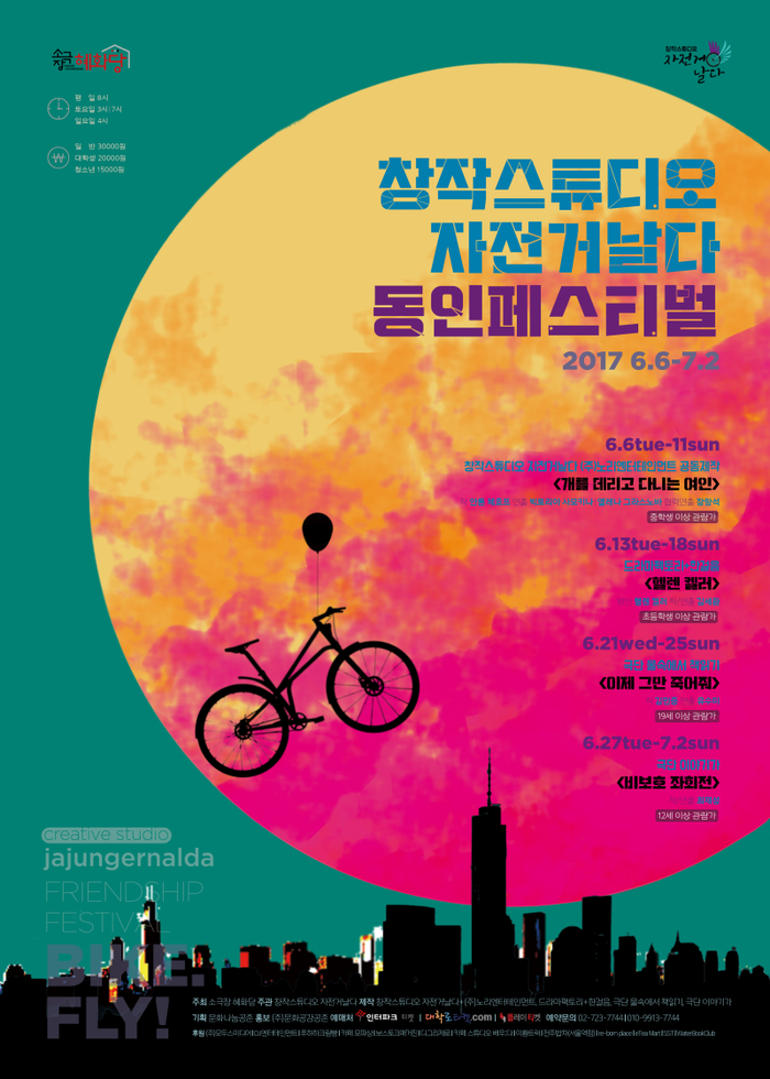 자전거 날다의 4인의 연출이 중심이 된 이번 페스티벌은 한 달간 형식과 장르의 구애 없는 다채로운 작품들이 선보여질 예정이다. 개막작은 창작스튜디오 자전거날다와 러시아팀인 (주)노리엔터테인먼트의 공동제작 으로 안톤체홉의 ‘개를 데리고 다니는 여인‘ (연출:빅토리아 사모키나,옐레나 그라스노바/협력연출:장항석)이다.