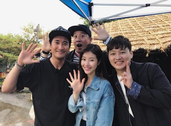 해당 사진에는 박하나가 배우 신현준, 개그맨 정준하 그리고 셰프 신효섭에 둘러싸여 환한 미소를 지으며 미모를 뽐내고 있다.