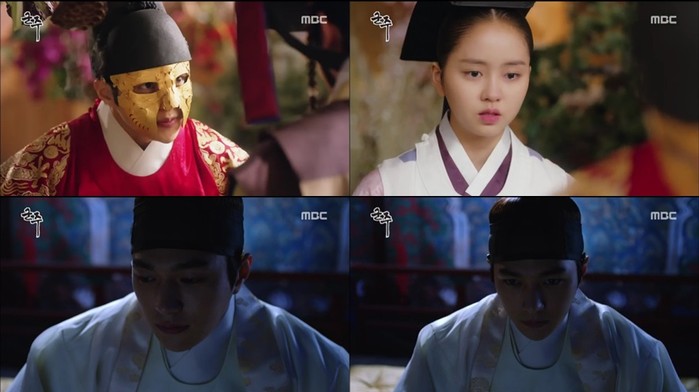 '군주:가면의 주인'에서 엘이 김소현을 궁 안에서 만났다. 정체를 밝힐 수 없는 엘은, 김소현을 향한 마음을 앓았다.