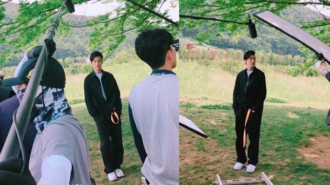 공개된 사진 속 그는 극중 캐릭터를 위해 촌스러운 펑퍼짐한 바지와 상의를 입고 있음에도 작은 얼굴과 긴 기럭지로 완벽한 비율을 보이고 있어 눈길을 끌었다.