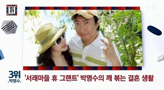 박명수는 현재 아내와 14번 고백 끝에 결혼에 성공했는데, 까칠한 겉무습과 달리 아내에 대한 지극한 사랑을 보여주며 ‘서래마을 휴그랜트’라 불리고 있다.