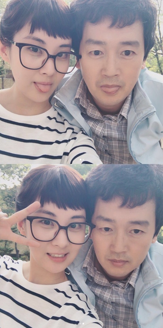 공개된 사진 속 그는 김정태와 나란히 머리를 맞대고 카메라를 응시하고 있는 모습이다.