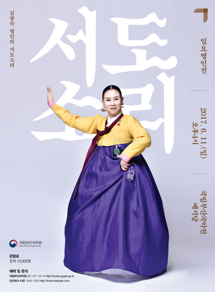 국악원은 일정한 장단 없이 가사에 맞추어 다양하게 변주되는 ‘서도소리’를 김광숙 명인 특유의 청아한 음색으로 들을 수 있을 것으로 기대하고 있다.