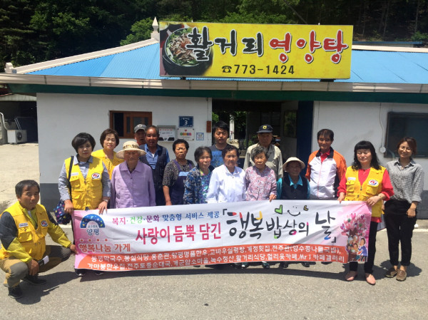 최근 경기 양평군은 단월·청운·양평·지평·개군면 지역의 독거노인과 지역아동센터 이용 어린이 등 총 70여명을 대상으로 식사를 지원하는 ‘행복밥상의 날 행사’를 개최했다. 사진은 관계자들이 행사 후 기념촬영을 하는 모습.(사진제공=양평군청)
