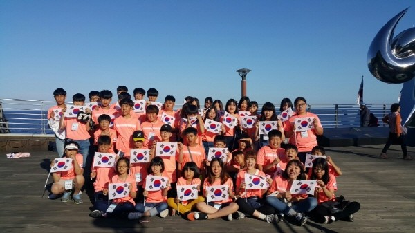 전남 영암교육지원청은 지난 1~3일 지역내 학생 44명과 교직원 11명을 대상으로 '독도를 부탁해'라는 주제로 울릉도·독도 탐방을 실시했다. 사진은 학생들이 태극기를 들고 기념촬영을 하는 모습.(사진제공=영암교육지원청)