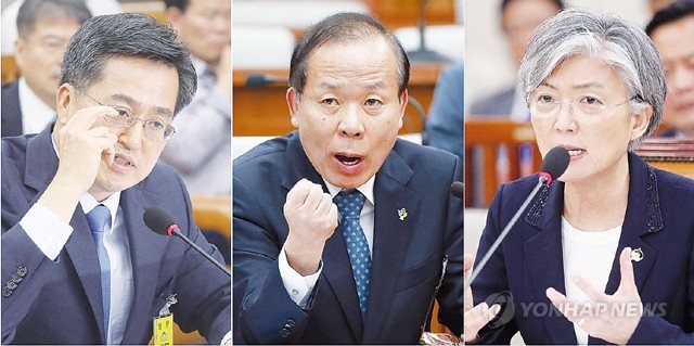 7일 국회에서 열린 김동연 부총리 겸 기획재정부 장관 후보자(왼쪽부터), 강경화 외교부 장관 후보자, 김이수 헌법재판소장 후보자에 대한 인사청문회에서 여야 위원들의 질문에 각 후보들이 답변하고 있다.