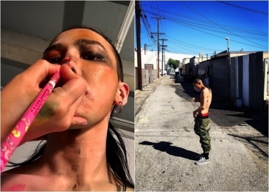 공개된 사진 속에는 얼굴 곳곳에 상처 분장을 한 지드래곤의 모습이 담겨있다.