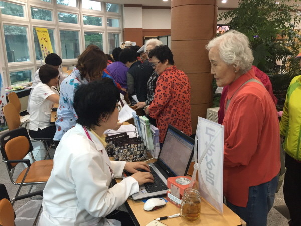경기 동두천시 보건소는 ‘그 이(齒)와의 평생동행, 내 인생의 건강미소’라는 슬로건으로 9일까지 제72회 구강보건의 날 기념행사를 개최한다. 사진은 지난 7일 행사에 참여한 노인들이 보건소 관계자들과 구강 상담을 진행 중인 모습.(사진제공=동두천시청)