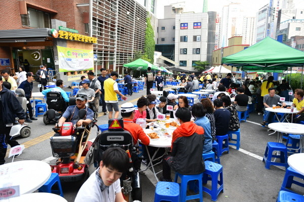 지난 9일 서울 중랑구 원광장애인종합복지관에서 ‘2017 희망나눔데이’ 행사가 열린 가운데 참여자들이 일일호프를 즐기고 있다. 일일호프 등 먹거리마당에서 발생된 수익금은 장애인과 가족들의 복지 증진을 위해 쓰인다. (사진제공=중랑구청)
