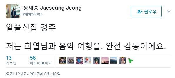 정재승은 지난 10일 자신의 SNS를 통해 "알쓸신잡 경주 저는 희열님과 음악여행을. 완전 감동이에요"라는 글을 게재했다.