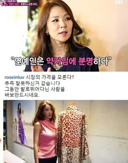 이에 장미인애는 다음날 자신의 인스타그램에 "시장의 가격을 모른다? 추측 잘못하신 거 같습니다. 그동안 발로 뛰어다닌 사람을 바보 만드시네요"라는 글과 함께 곽정은의 발언이 담긴 기사를 올렸다.