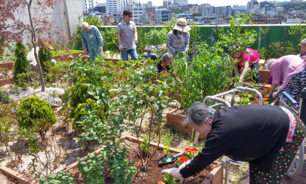 아울러 중곡보건지소에서는‘옥상텃밭’과 연계한 원예치료 프로그램을 운영하고 있다.