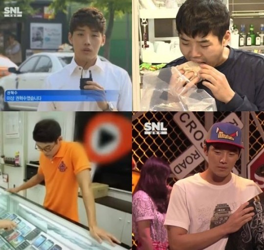 해당 사진에는 지난 2013년 방송된 tvN ‘SNL코리아 2’ 출연 당시 권혁수의 모습이 담겨있다. 지금의 그의 외모와 다르게 뾰족한 턱과 마른 몸매를 사진에서 확인할 수 있다.