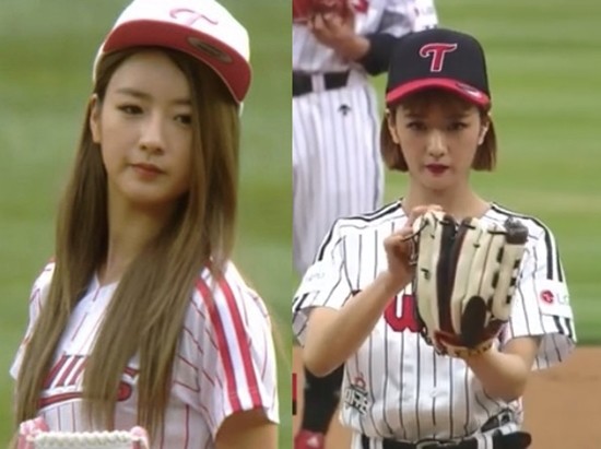 에이핑크의 멤버 윤보미의 시구 자태가 눈길을 끈다.