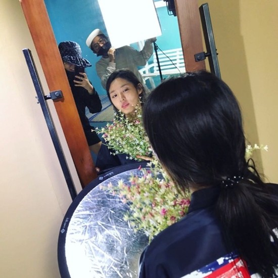사진 속 설현은 인형같은 미모를 뽐내며 반사판과 꽃을 들고 거울을 응시하고 있는 모습이다. 특히 사진으로도 느껴지는 AOA 멤버 지민과 개그우먼 김신영과의 화기애애한 분위기가 눈길을 끈다.