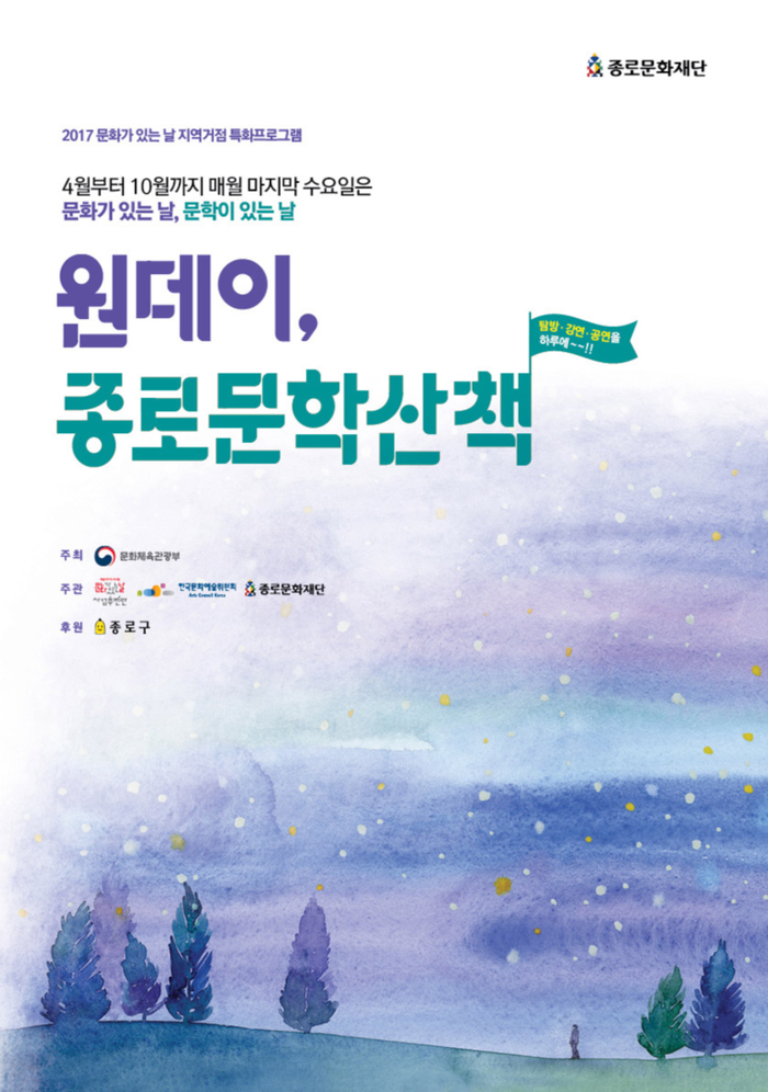 김영종 구청장은 “종로는 오랫동안 대한민국 중심도시로 역할하면서 수많은 역사 유적 뿐 아니라 유명 문인들의 발자취 역시 다양하게 지니고 있는 ‘지붕없는 박물관’이라며, ”이번 『원데이, 종로문학산책』프로그램으로 주민들이 문학적 풍요를 맘껏 누리게 되시길 바란다“고 말했다.