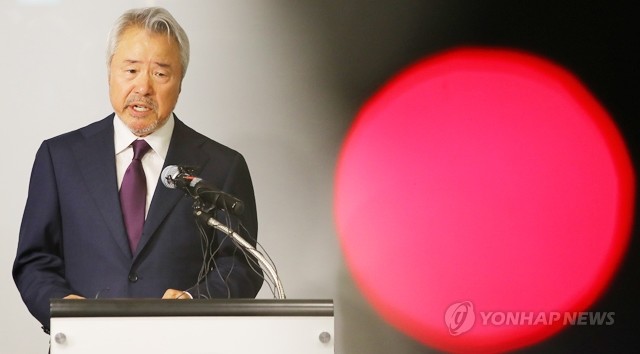 ‘갑질논란’으로 검찰의 수사 선상에 오른 미스터피자 창업주 정우현 MP그룹 회장이 26일 오후 서울 서초구 방배동 사옥에서 가진 기자회견에서 대국민 사과문을 발표하고 있다.