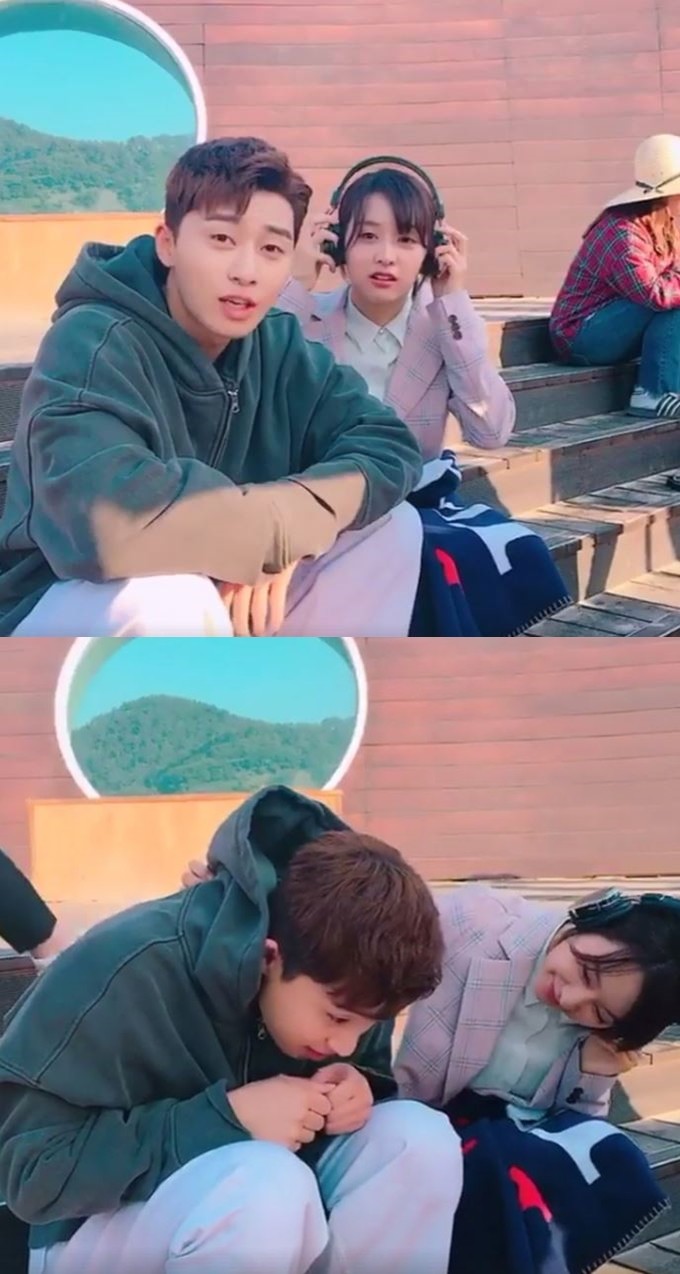 공개된 영상에는 계단에 나란히 앉아 촬영을 준비하는 박서준과 김지원의 모습이 담겨있다. 특히 두 사람은 촬영 쉬는 시간임에도 불구, 꼭 붙어 서로 장난치며 화기애애한 분위기를 자아내고 있다.