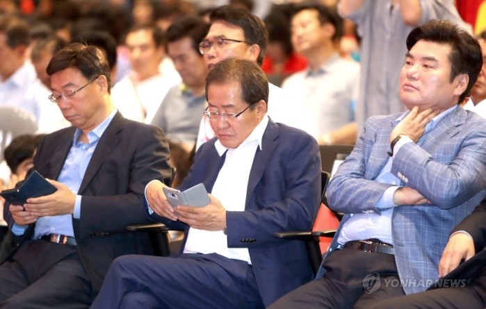 이 둘은 앞서 대전 한밭체육관에서 열린 충청권 합동연설회에서도 '홍준표 후보의 바른정당 입당설'로 충돌하다가 급기야 홍 후보는 기념촬영도 생략한 채 토론회장을 먼저 떠나 버려 그 자리에 참석했던 당원들의 원성을 샀다.