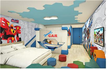 ‘또봇룸’은 또봇의 주요 캐릭터중 하나인 ‘카고’를 컨셉으로 했다. 자동차 침대, 활동성이 많은 아이들을 위한 다양한 소품 등이 구비돼 남자아이들을 위한 맞춤형 객실로 꾸몄다.